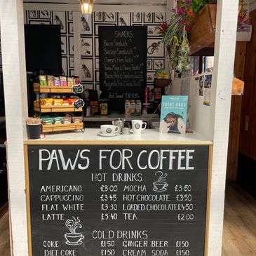 Paws for Coffee - Drink in or takeaway coffee cafe open 7 days a week from 9.30am to 12pm - located at the back of the pub in the Garden Room - muddy boots, dogs and children all welcome